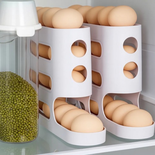 - Esto hace que funcione como dispensador, garantizando que los huevos se deslicen automáticamente a medida que se van sacando.
