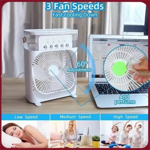 Este práctico climatizador personal es perfecto para refrescar espacios pequeños como tu escritorio, auto o área de trabajo. Además de enfriar el aire, también lo humidifica y aromatiza para una experiencia completa y relajante. 3 en 1: Enfría, humidifica y permite agregar fragancias.