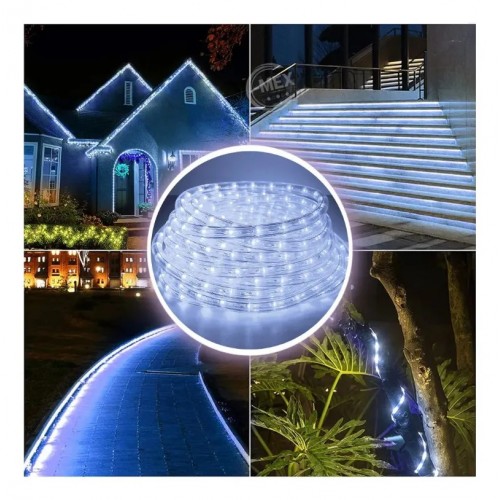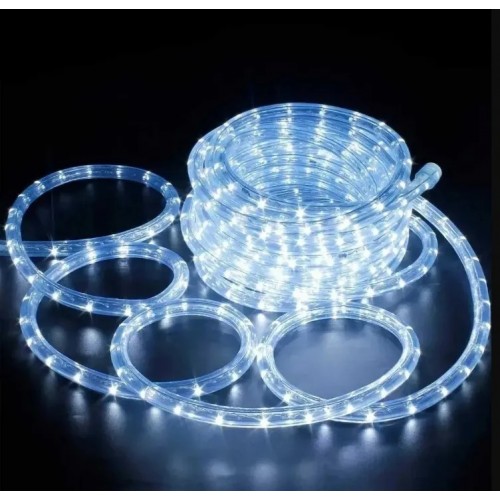 Ideales para darle un toque mágico a tu hogar! MANGUERA SILICONADA DE LUZ BLANCA FRIA EXTERIOR 10 metros - Manguera Siliconada de Luz Blanca Fría decorativa. - Ideal para decorar cualquier lugar de tu casa, patio o fachada. - Se puede usar tanto en exterior como en interior. - Se Enchufa directamente a 220V. - Con Controlador para regular Luz Fija o modo Flash lento y Rapido DATOS TECNICOS: - Material: Silicona - Color Led: Blanco Frio - Largo de Manguera: 10 mts. - Espesor de la Manguera: 6 mm. aprox. - Alimentacion: 220v
