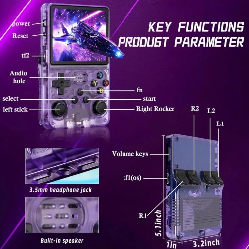 Rendimiento Robusto: Equipada con un procesador RK3326, ARM 64 bits quad-core, hasta 1.5GHz, la R36S garantiza un rendimiento fluido en la mayoría de los emuladores, incluso para títulos más exigentes.