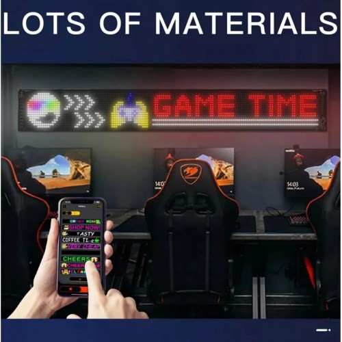 Control de aplicación inteligente El tablero LED está controlado por una aplicación conectada por Bluetooth, que admite la conexión de múltiples pantallas LED al mismo tiempo, lo que hace que su tienda sea más notoria. La aplicación tiene muchos modos y animaciones interesantes integrados. Su teléfono hace que sea más fácil personalizar patrones y texto divertidos para personalizar su tienda.