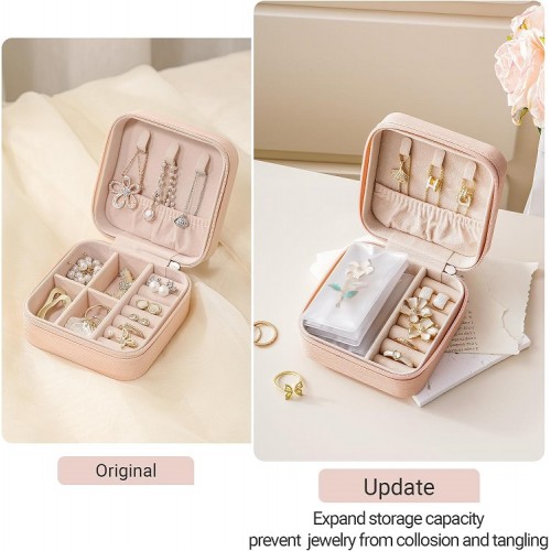 Este alhajero compacto y portátil es perfecto para mantener tus accesorios ordenados y protegidos en viajes, salidas o el día a día.