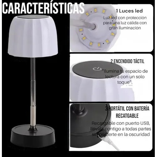 Lámpara de mesa táctil: suave, regulable, recargable mediante USB, retráctil