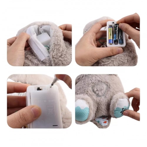 * Música suave y relajante: además de su respiración, el peluche reproduce una suave melodía que complementa su efecto relajante